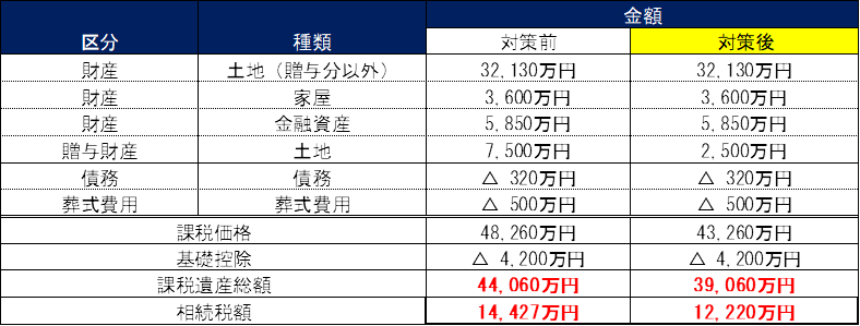 それに伴い相続税額は、1億4427万円となりそうな為、相続時精算課税贈与により贈与税無税で2207万円の相続税が節税が目論める。