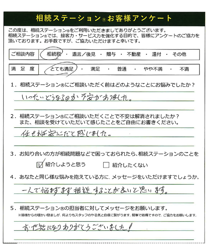 5. 相続ステーションⓇの担当者に対してメッセージをお願いします。